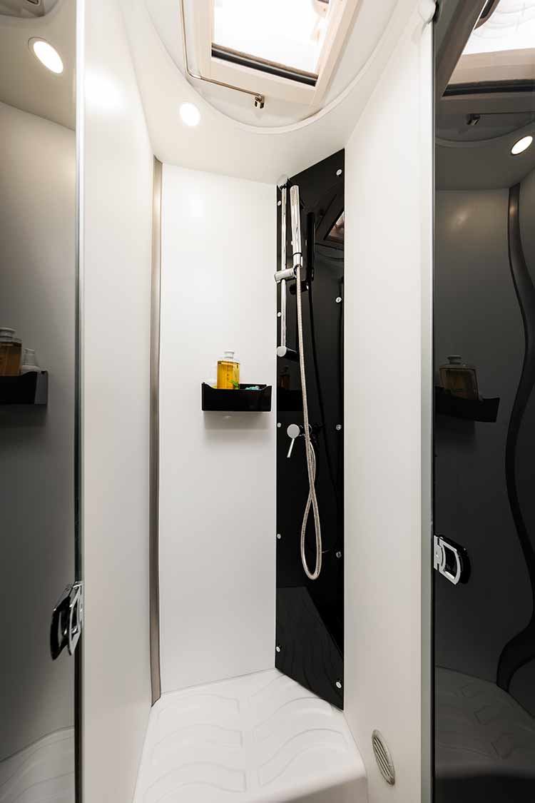 El garaje tiene mucha capacidad, tomas de 12 V y 230 V y doble portón; además se puede acceder desde dentro del habitáculo, lo que facilita su uso diario.