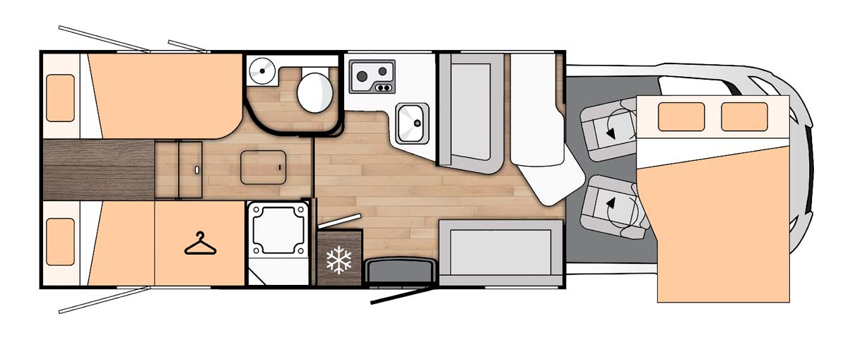 El liderazgo de la autocaravana más vendida en 2025 se explica por su propuesta económica contenida dentro de la gama perfilada, ofrece 5 plazas reales tanto en ruta como de noche y mantiene una distribución muy práctica. Todo ello contextualizado en un mercado sensible al precio.