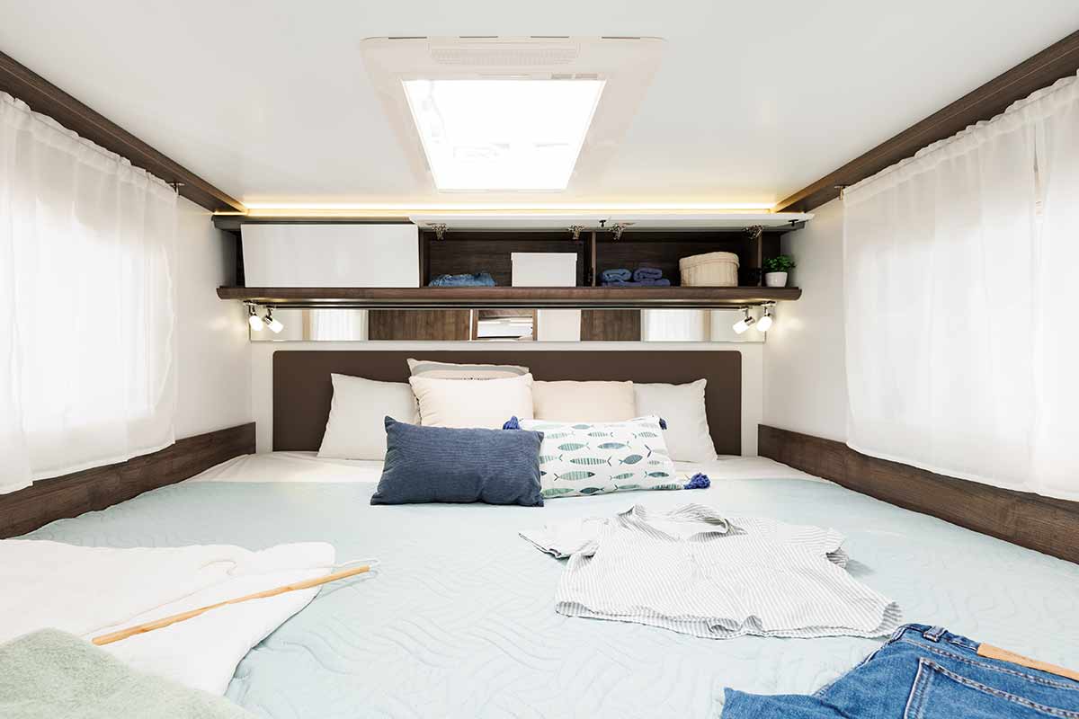 - Cama eléctrica abatible delantera, con capacidad para dos personas.