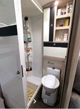 5,99 metros son suficientes para ubicar un cómodo comedor junto a un completo bloque cocina, frigorífico de 150L de capacidad, cuarto de baño ergonómico con ducha incluida y una cama de matrimonio (127,5×219 cm), ubicada en la parte trasera.