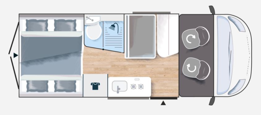 Challenger ofrece un camper de menos 6 metros, pero que cuenta con dos camas de matrimonio y una individual, permitiendo la pernocta de hasta 5 personas