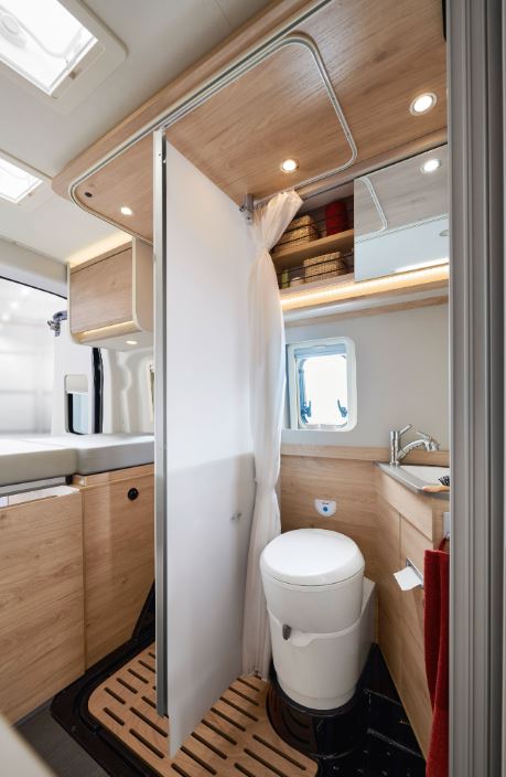 Además de una distribución que genera sensación de amplitud, la principal novedad que aporta el camper Dethleffs Globetrail 590C es su peculiar cuarto de baño con nuevo concepto.