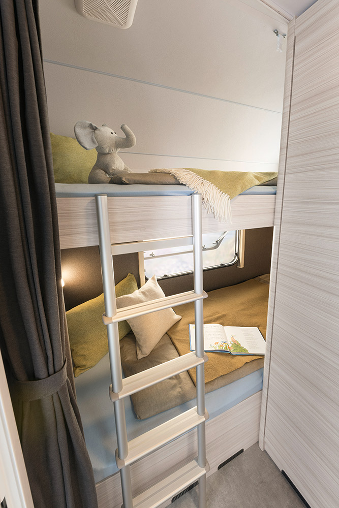 410 LK con salón delantero y literas superpuestas traseras.
