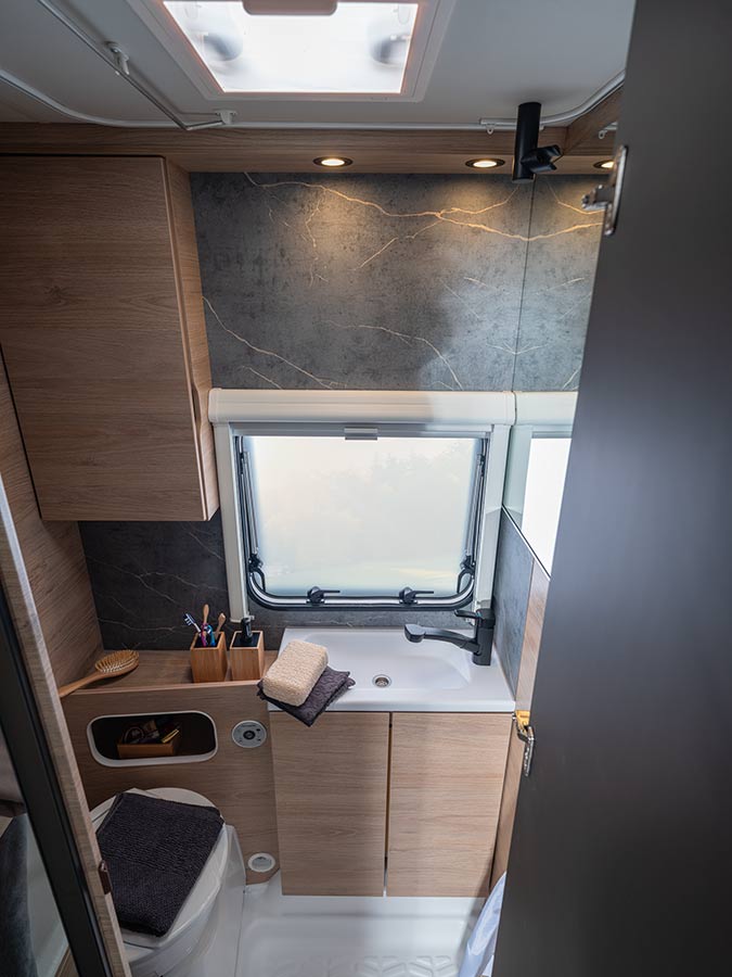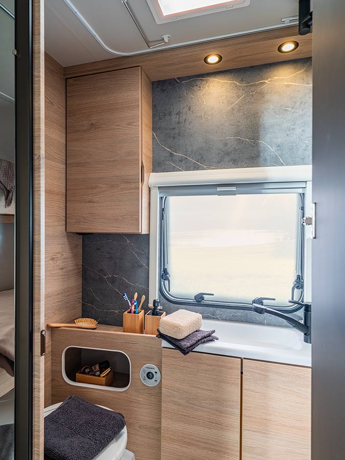 Entre los principales cambios, la CaraOne incorpora un interior revisado que busca equilibrar comodidad y aprovechamiento del espacio. El baño introduce un acabado efecto mármol que añade un matiz más cuidado.